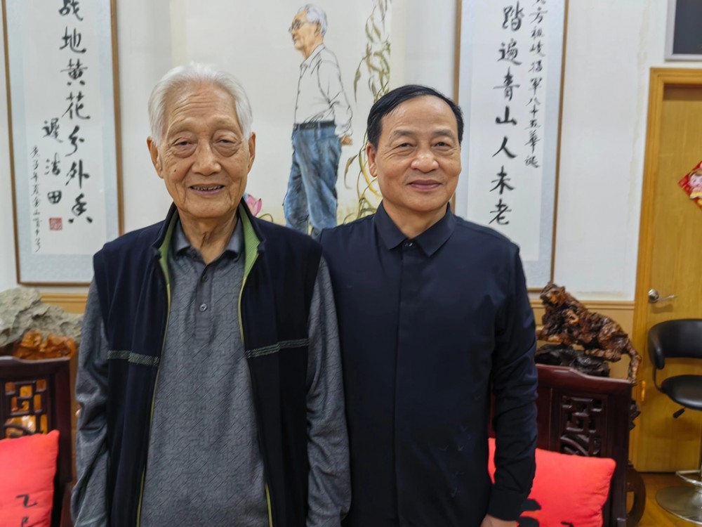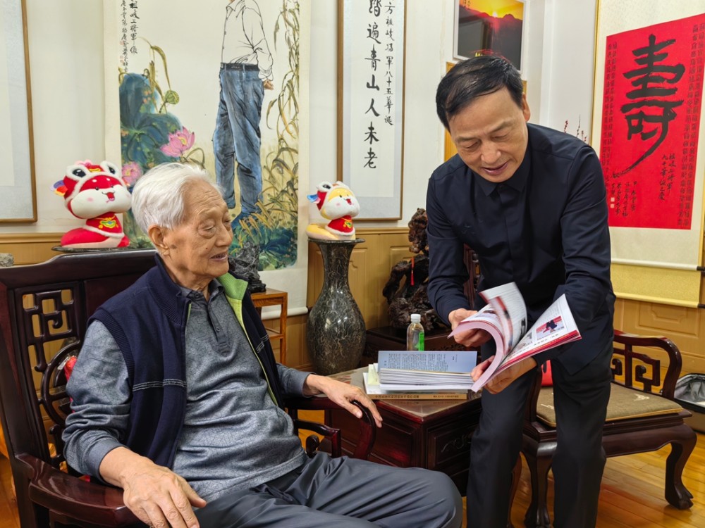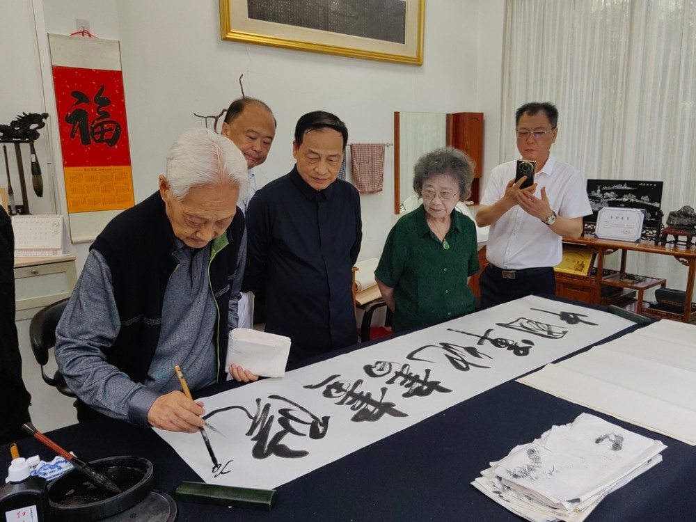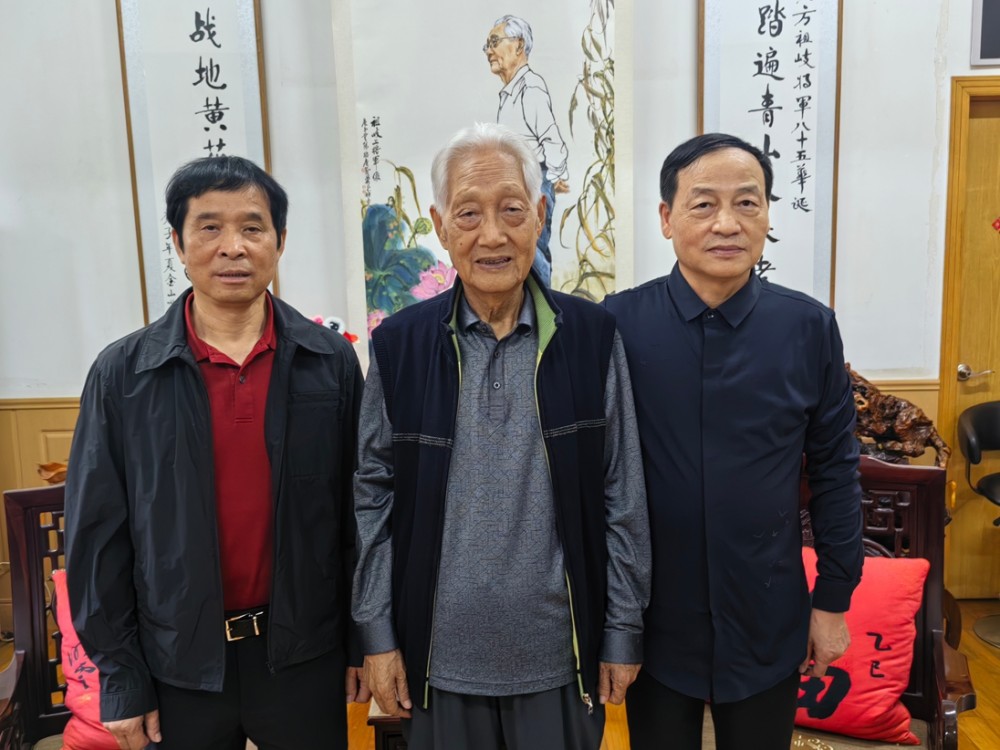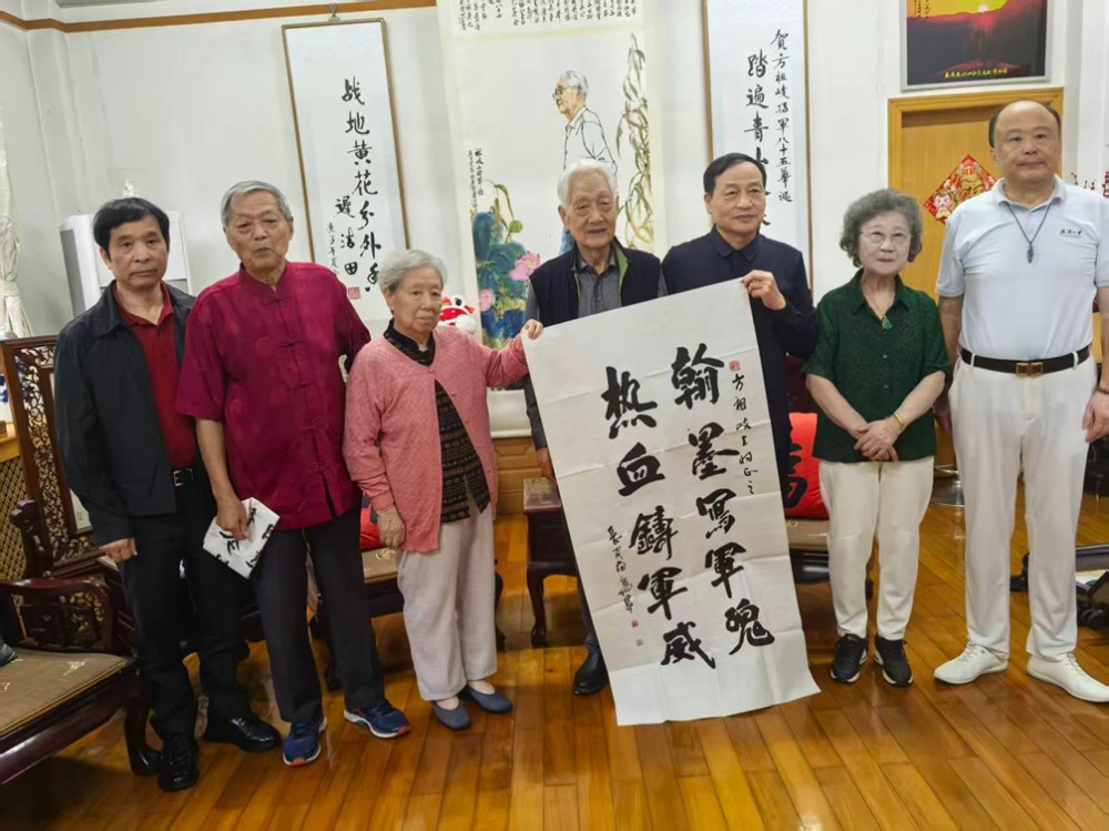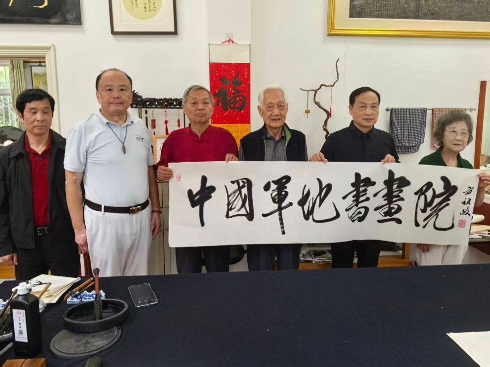 本网北京讯(记者李新尧 黄凤涛)年届九旬的方祖歧同志,9 月 26 日上午亲切会见了中国军地书画院执行院长祝天华一行,并为该书画院题写了院名。方祖歧同志书写的院名七个大字雄浑凝重,笔法严谨,结构方正,线条流畅有力,兼具柳体筋骨与颜体气势,字体刚劲有力,布局大气磅礴,展现出其深厚的书法艺术功底与独特的个人风采。