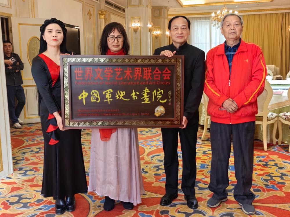 世界文学艺术界联合会主席吕云程将牌匾授予中国军地书画院执行院长祝天华时,标志着中国军地书画艺术交流走向更广阔的国际舞台。